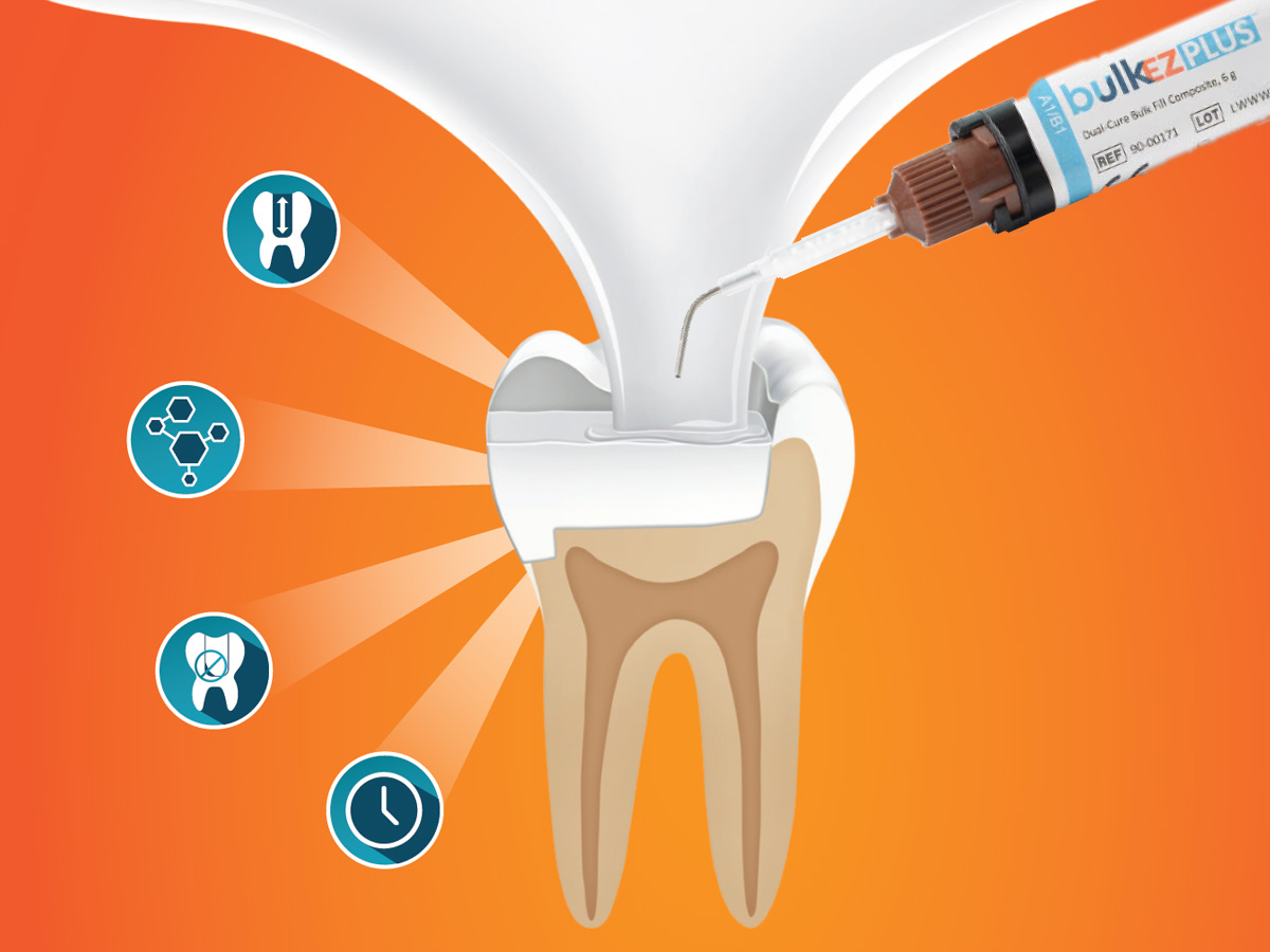 Mit seiner unbegrenzten Aushärtungstiefe, der kontrollierten Schrumpfung sowie der hohen Fließfähigkeit ermöglicht Bulk EZ Plus effiziente Restaurationen mit bis zu 60 % Zeitersparnis.