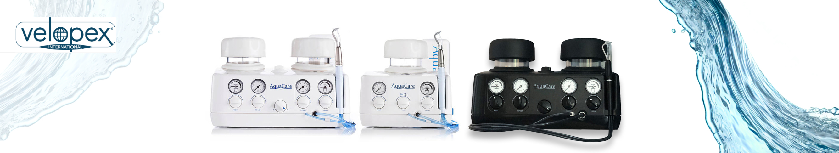 Das patentierte AquaCare-Handstück erzeugt einen Highspeed- Flüssigkeitsstrom, der den Pulverstrom umschließt und damit ein Verklumpen und Verstopfen verhindert. Dank des Dreifachfußschalters können die Arbeitsschritte Sandstrahlen, Reinigen und Trocknen mit nur einem einzigen Handstück ausgeführt werden, was einen flüssigen Arbeitsablauf ohne Unterbrechungen erlaubt. Das Handstück zeichnet sich durch seine ergonomische Form aus: Es ist klein, handlich und daher bestens für den alltäglichen Gebrauch geeignet.